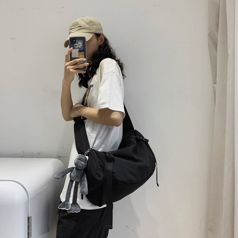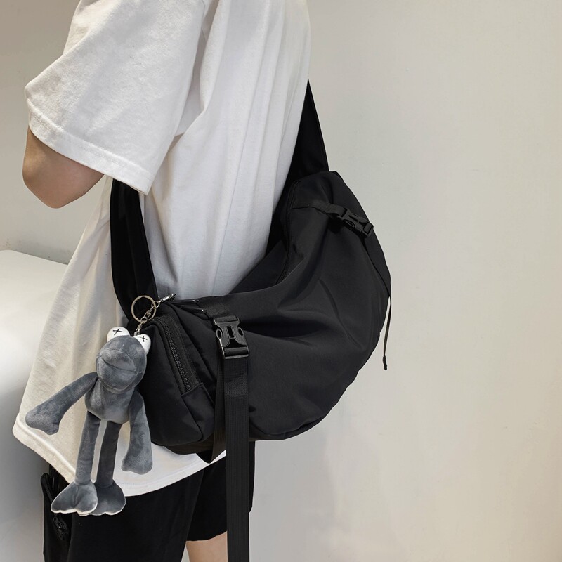 斜挎包男士潮牌日系ins学生大容量工装旅行背包女死飞邮差单肩包