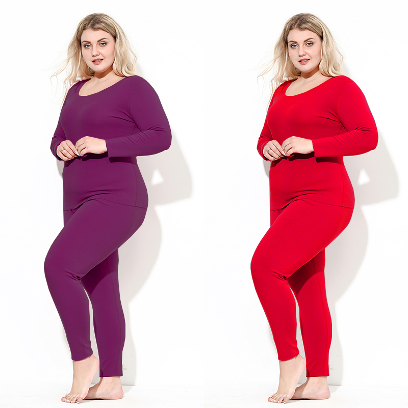 女士200斤本命年保暖内衣无痕内搭打底加绒大码秋衣秋裤德绒套装