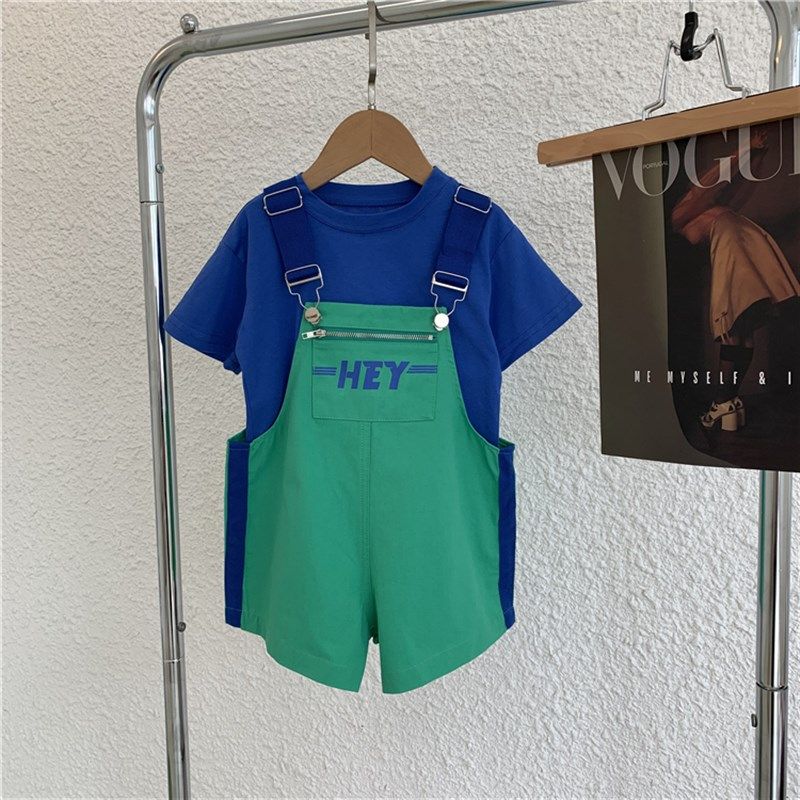 男童网红套装宝宝夏装背带裤儿童韩版裤子夏季洋气T恤短裤两件套