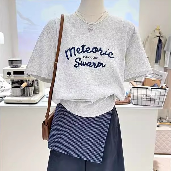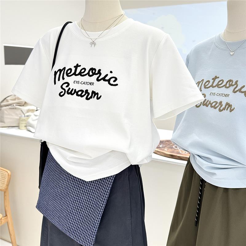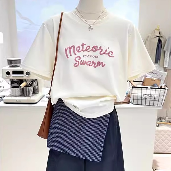 纯棉字母印花夏季新品韩系复古气质宽松显瘦短袖T恤女内搭半袖tee