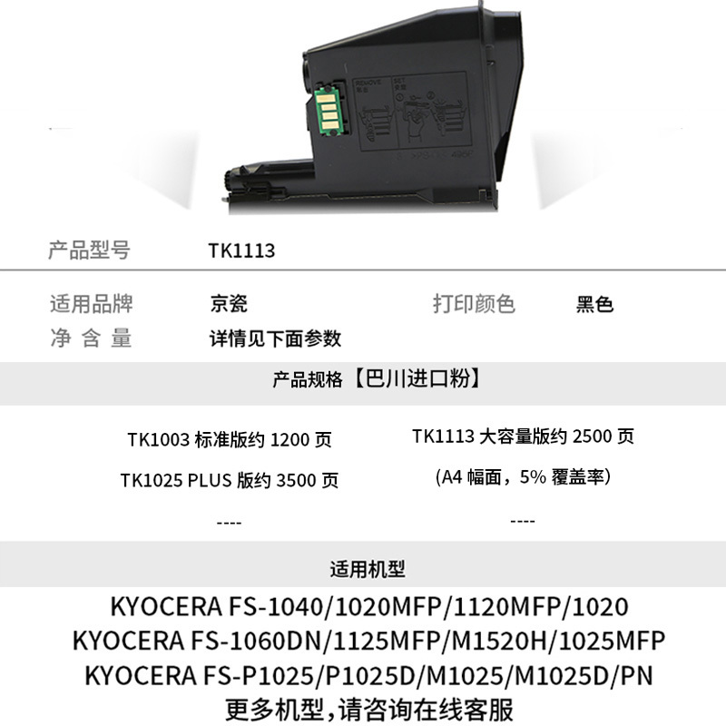 适用京瓷TK1113粉盒FS1060DN 1125m1520h激光打印机硒鼓FS1120MFP 1123 1128 1040 P1025 FS1003 m1025d/pn