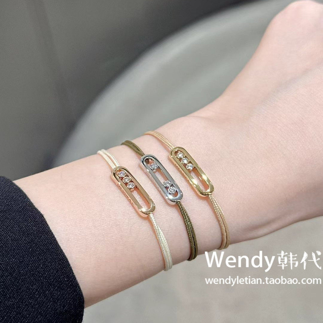 代购Messika梅西卡 玫瑰金三钻钻石滑动绳圈手链手绳手环care