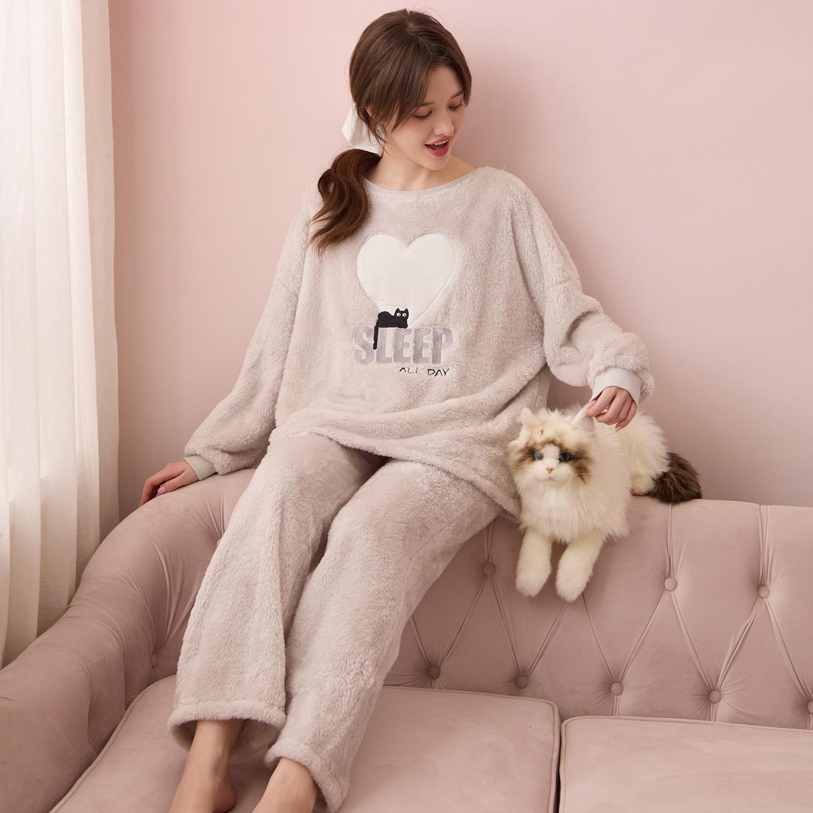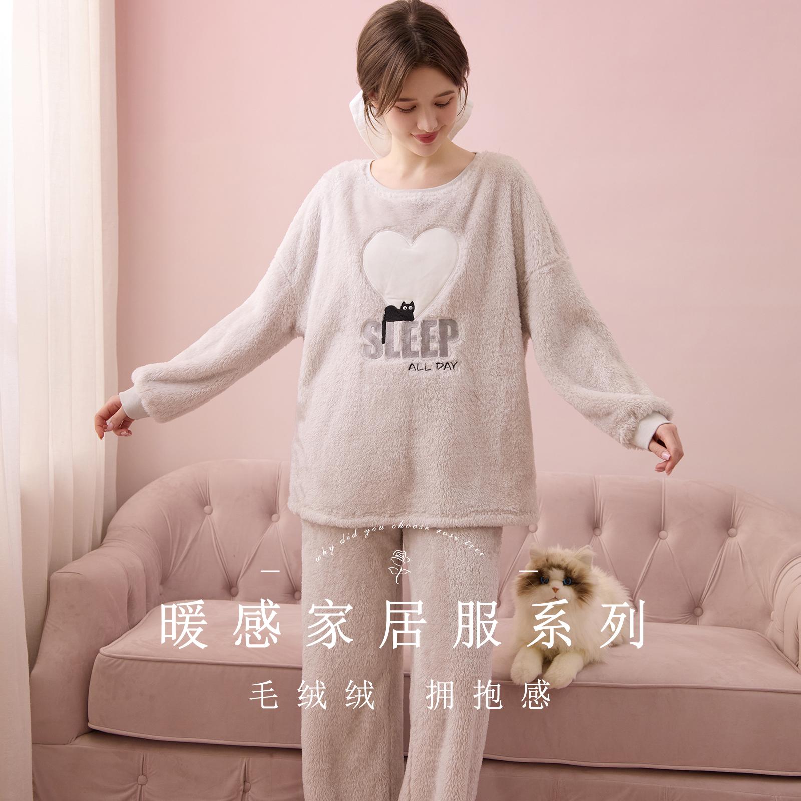 RoseTree珊瑚绒睡衣套装女冬季日系可爱毛绒法兰绒保暖家居服冬天