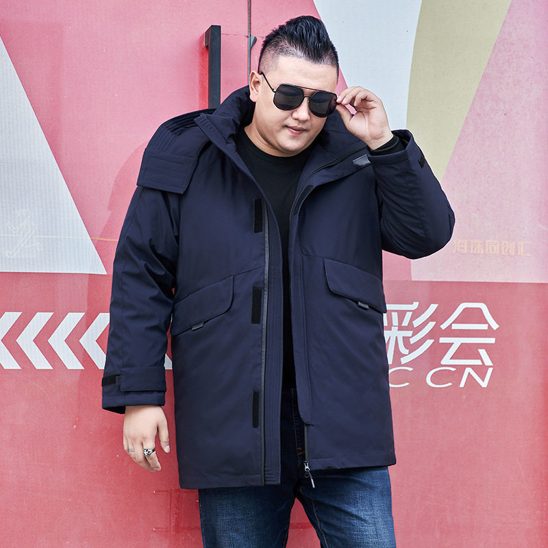 冬季300斤特胖男人羽绒服加肥加大码可脱卸内胆羽绒衣工装外套厚