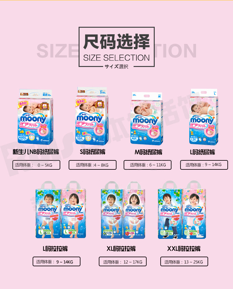 日本本土尤妮佳moony婴儿纸尿裤NB S尿不湿M尿片男宝宝LXXL拉拉裤