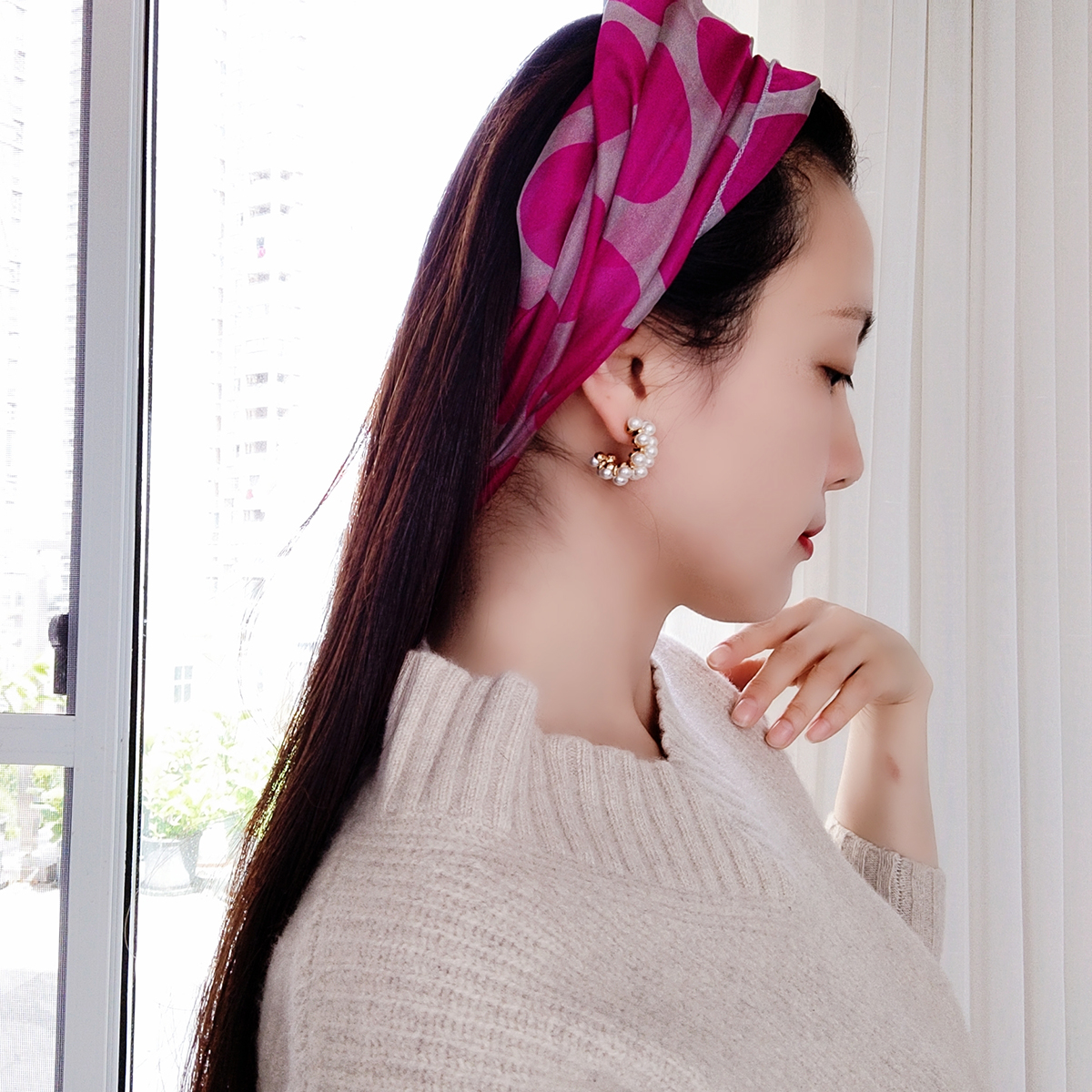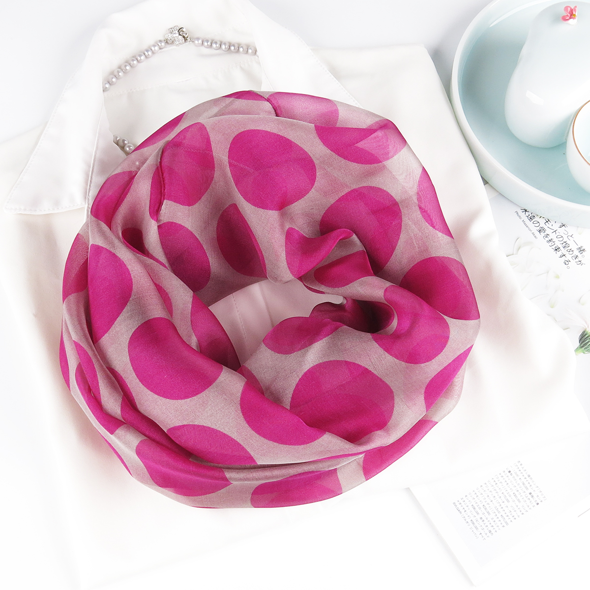 围脖女薄款骑行真丝围巾桑蚕丝小丝巾头巾春秋冬季玫红色波点脖套