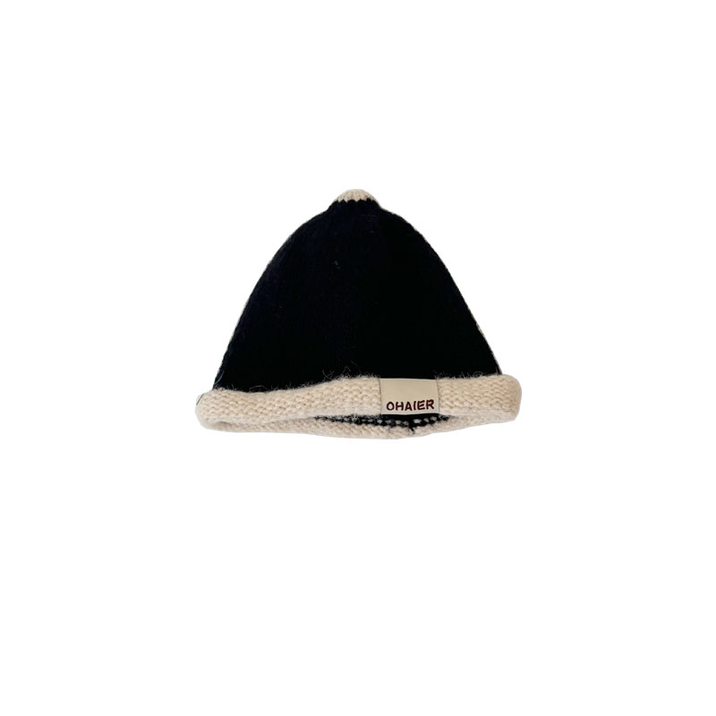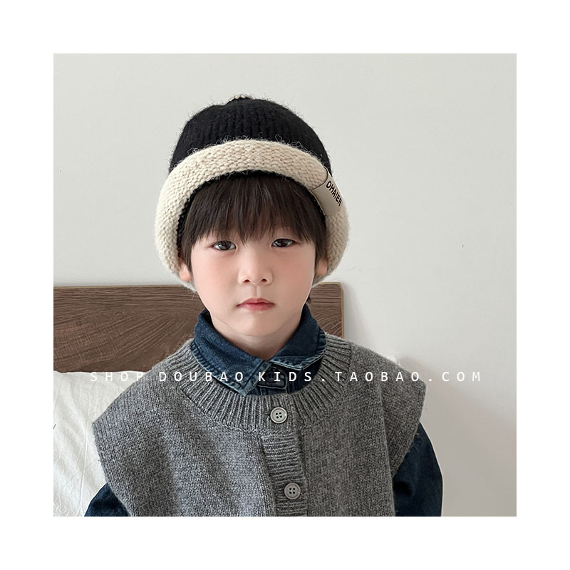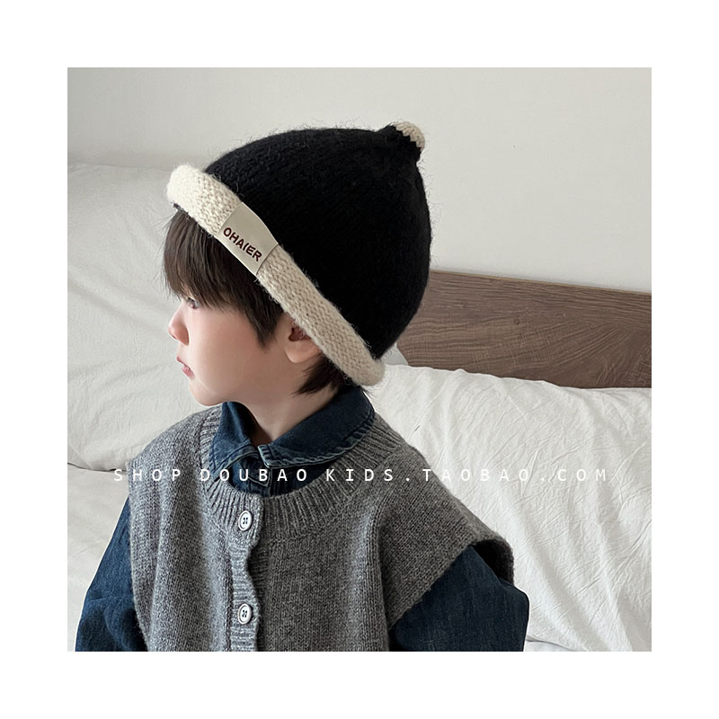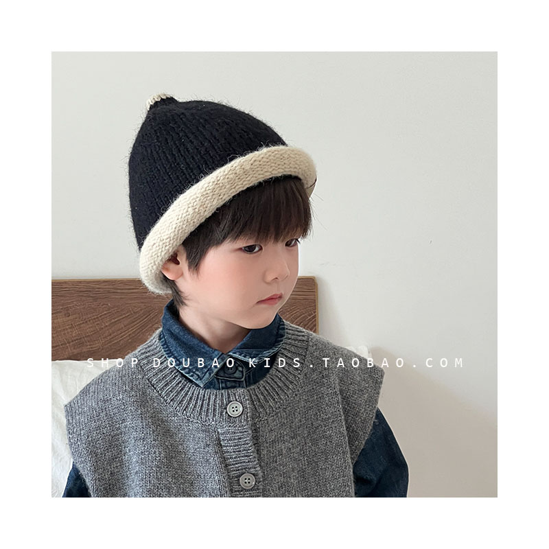 ins秋冬宝宝卷边瓜皮帽男童帽子拼色针织女孩保暖套头儿童毛线帽