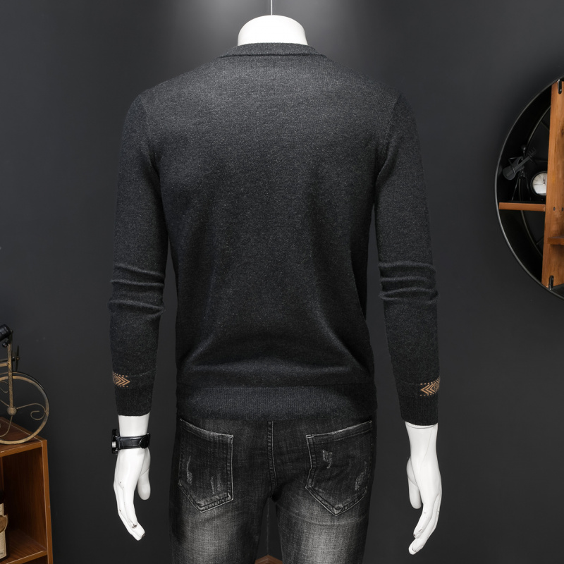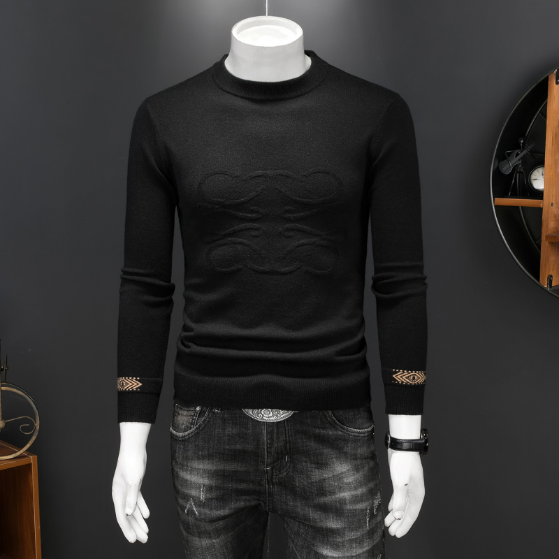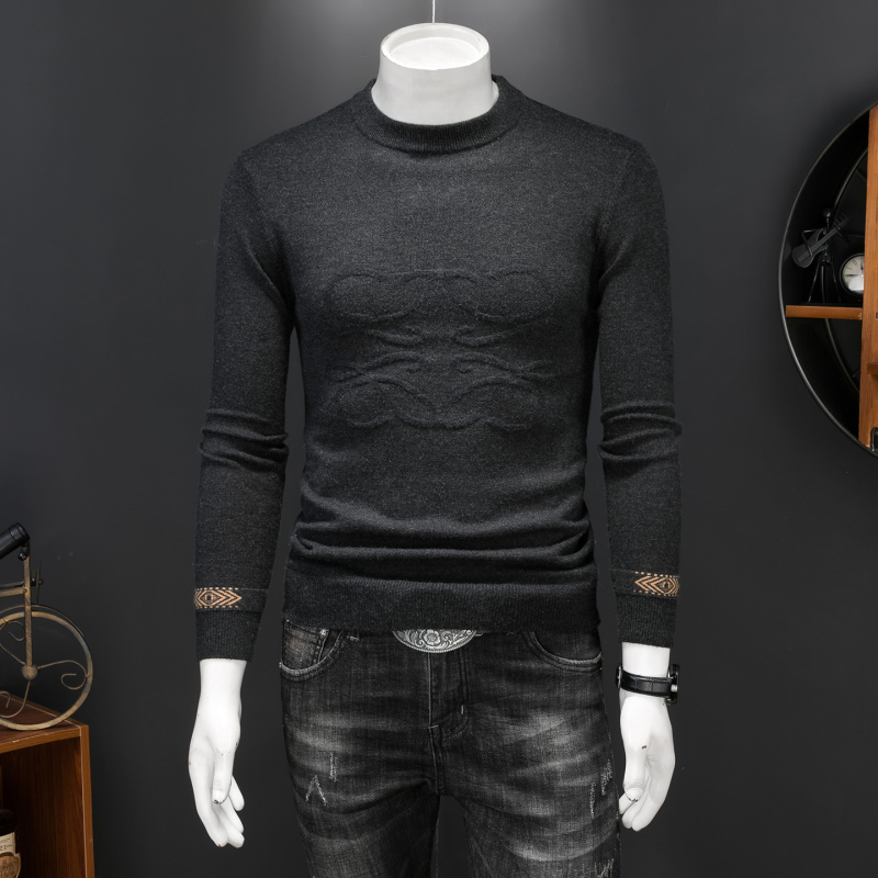 秋冬季男装半高领字母提花羊毛衫潮流修身简约刺绣毛衣打底针织衫