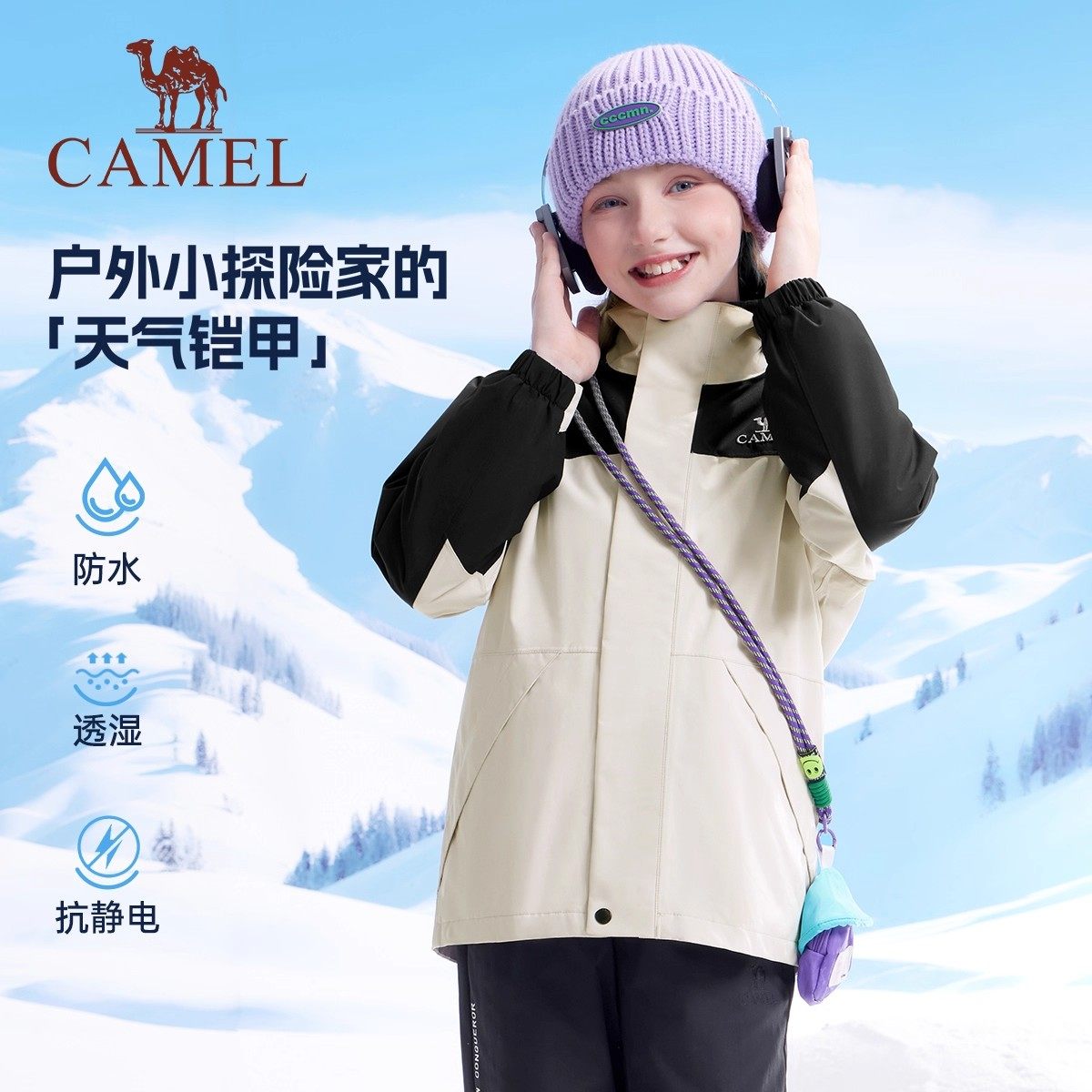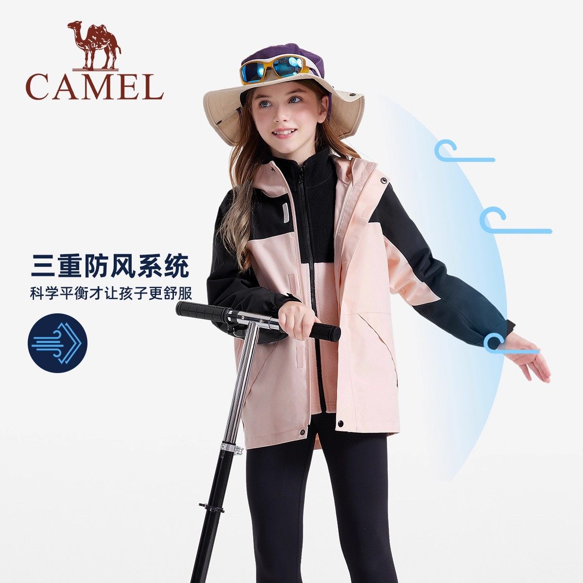 骆驼儿童冲锋衣三合一可拆卸中大童防风防水男女童风衣外套童装