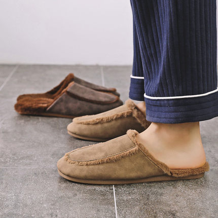 羊巴皮哑光质感情侣牛筋底棉拖