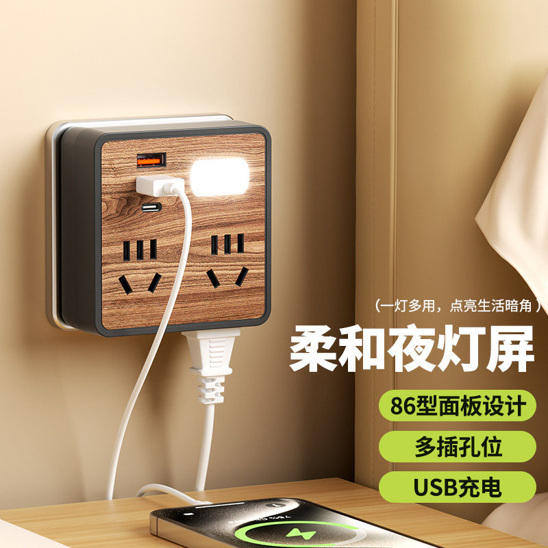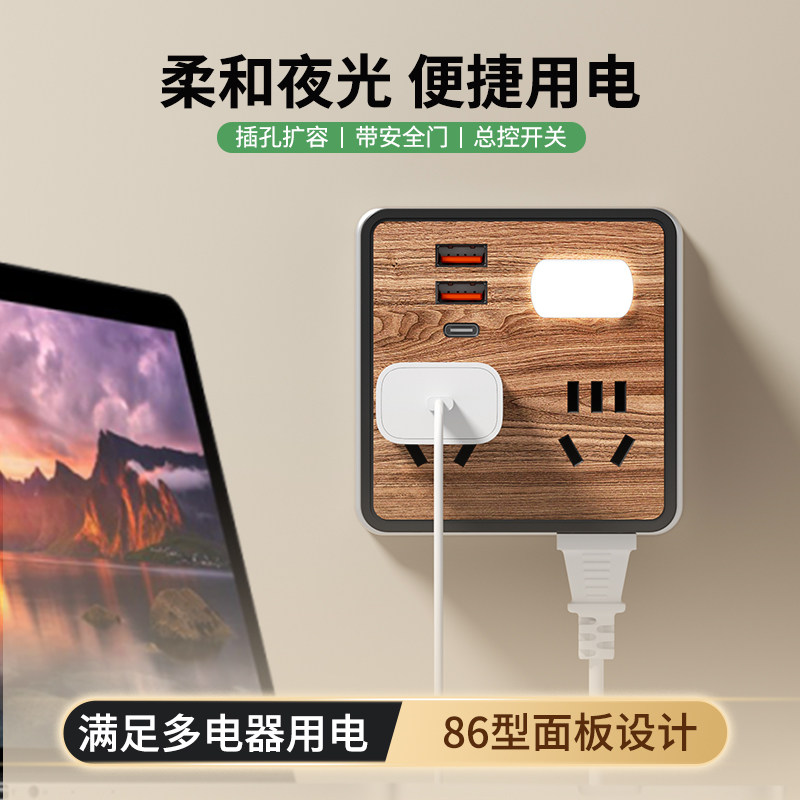 全铜usb插座转换器 家用木纹转换插头宿舍夜灯卧室床头扩展一转多