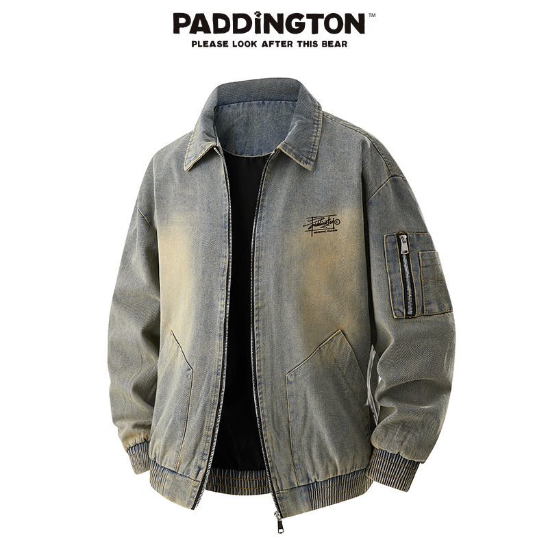 帕丁顿熊简约字母印花美式复古工装夹克休闲上衣牛仔外套男款