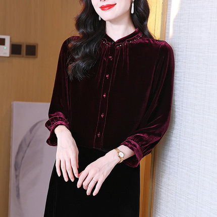 真丝丝绒衬衣女秋季新款优雅气质大牌高档优雅宽松显瘦桑蚕丝衬衫