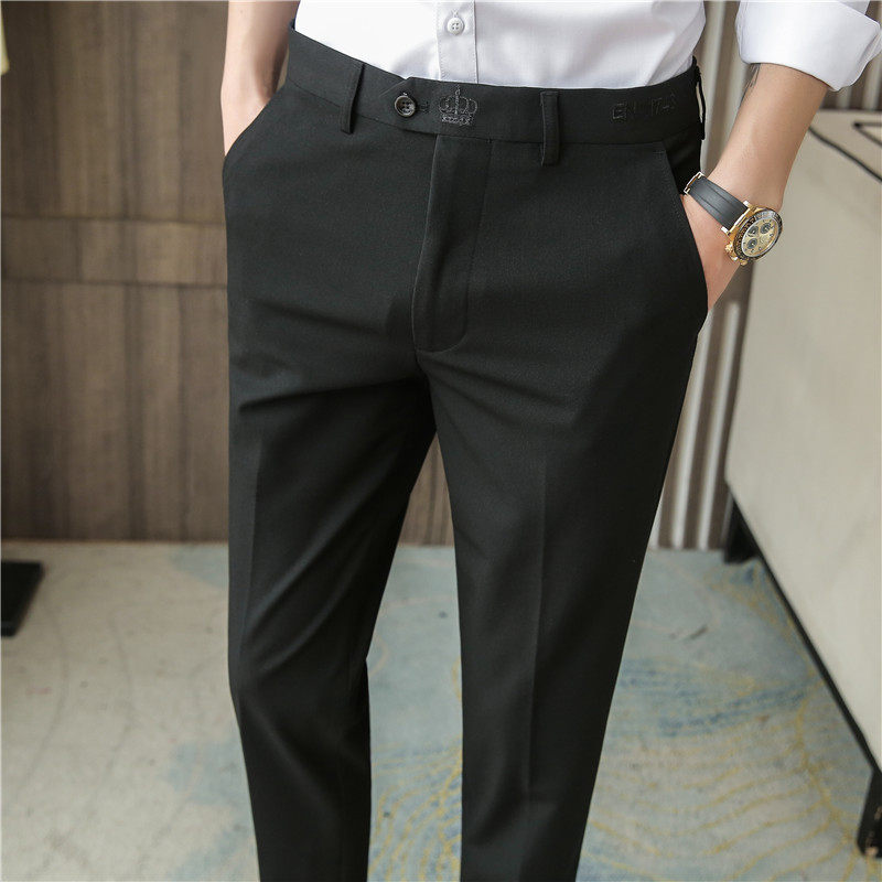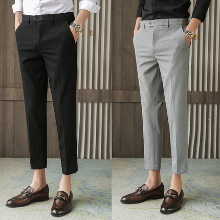 春夏薄款垂感西裤男修身西服裤子小脚九分韩版男士休闲商务西装裤