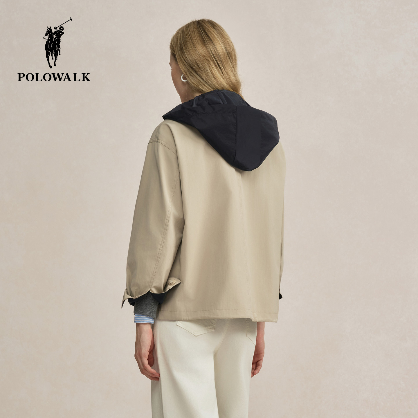 POLOWALK女装2025秋冬女士外套巴恩复古时尚夹克连帽拉链短款风衣