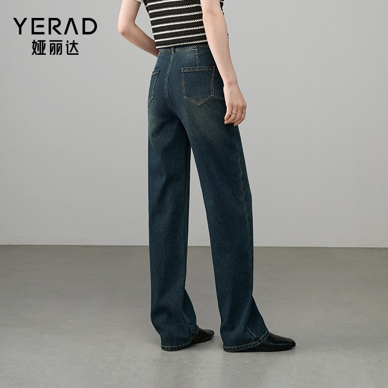 娅丽达高腰显瘦窄版阔腿牛仔裤