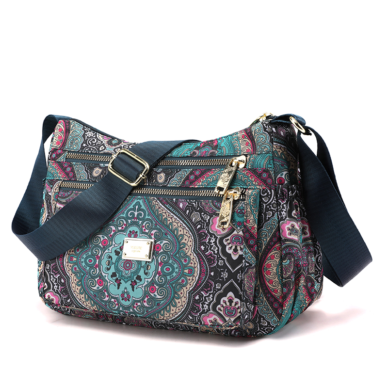 防水牛津布斜挎包时尚印花中老年女包大容量尼龙单肩包帆布妈咪包