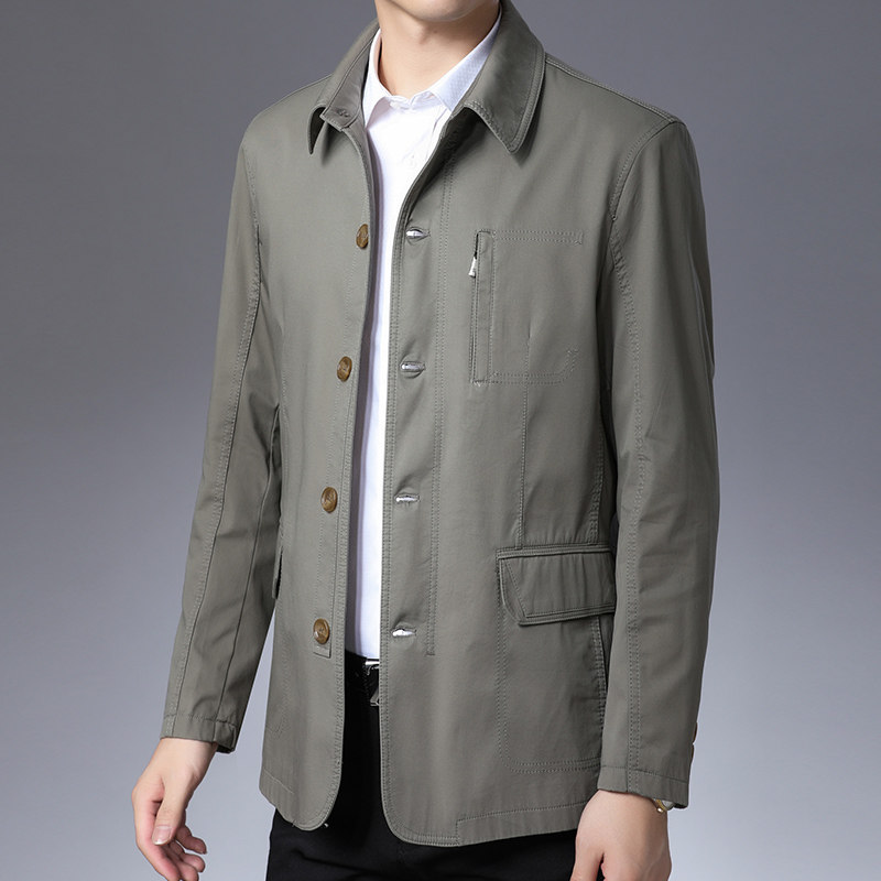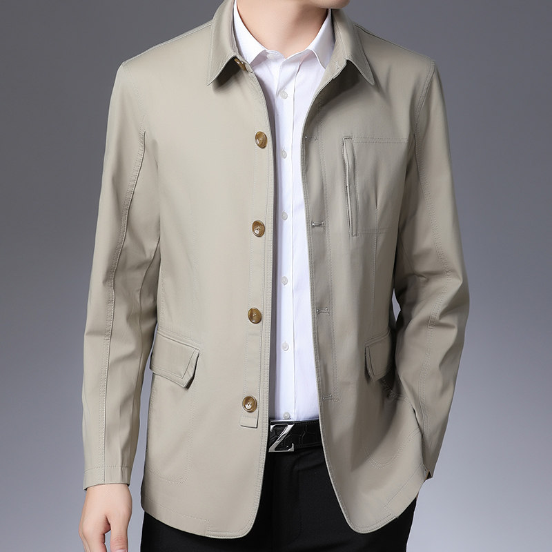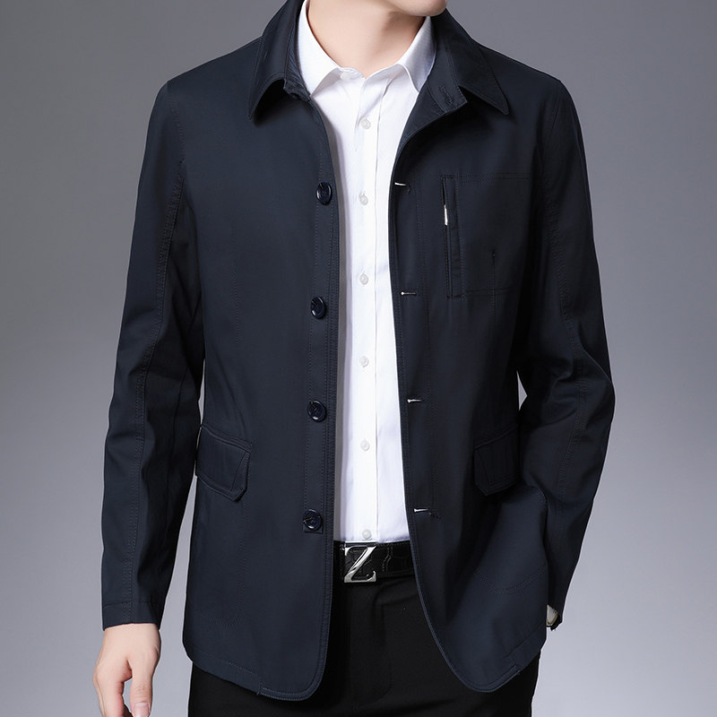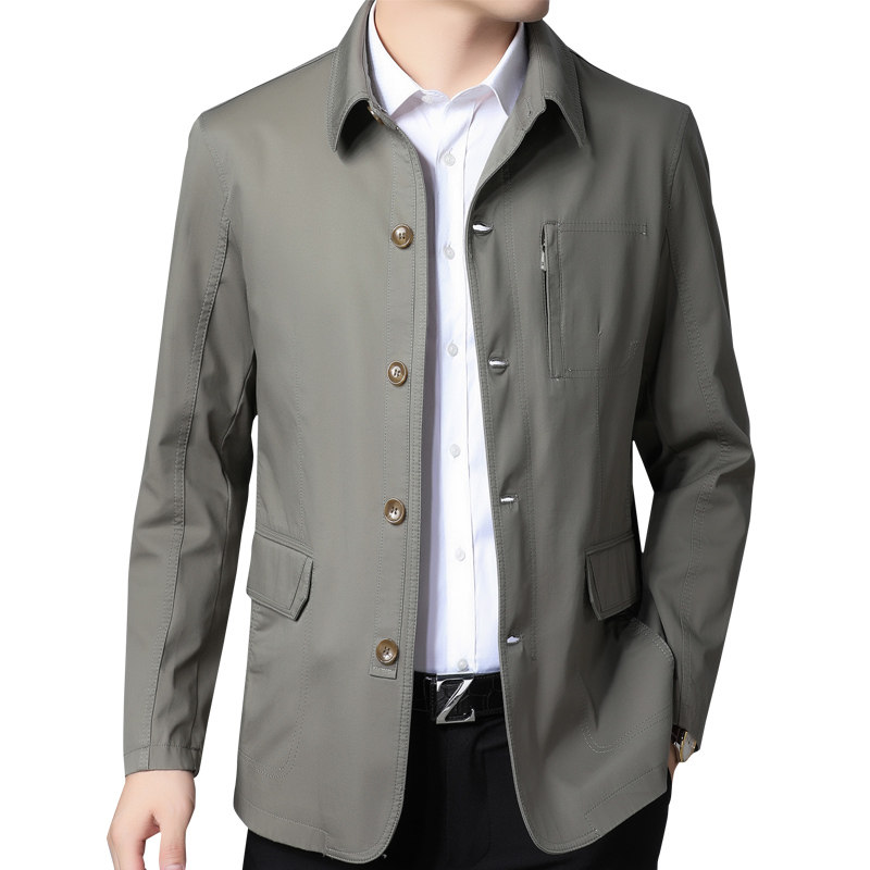 罗蒙男士风衣春秋季款商务休闲帅气翻领防风夹克外套男装纯棉大衣