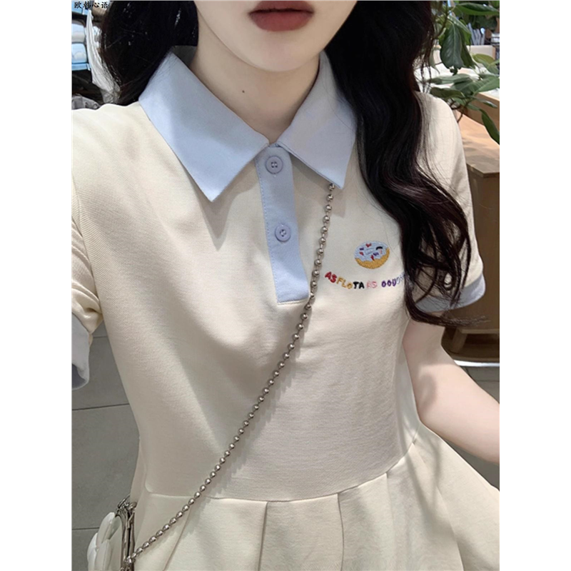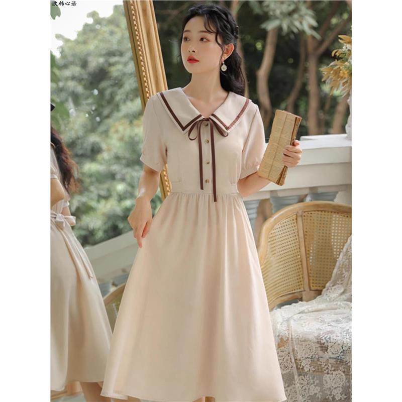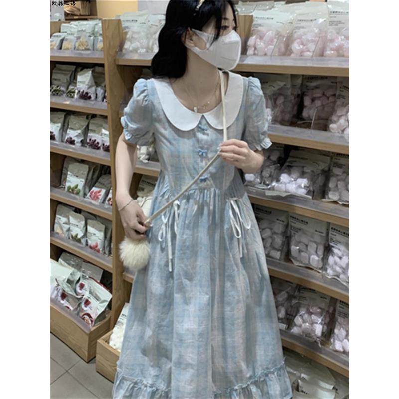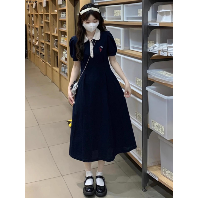 少女娃娃领连衣裙2024夏装新款初中高中学生大童学院风显瘦长裙子