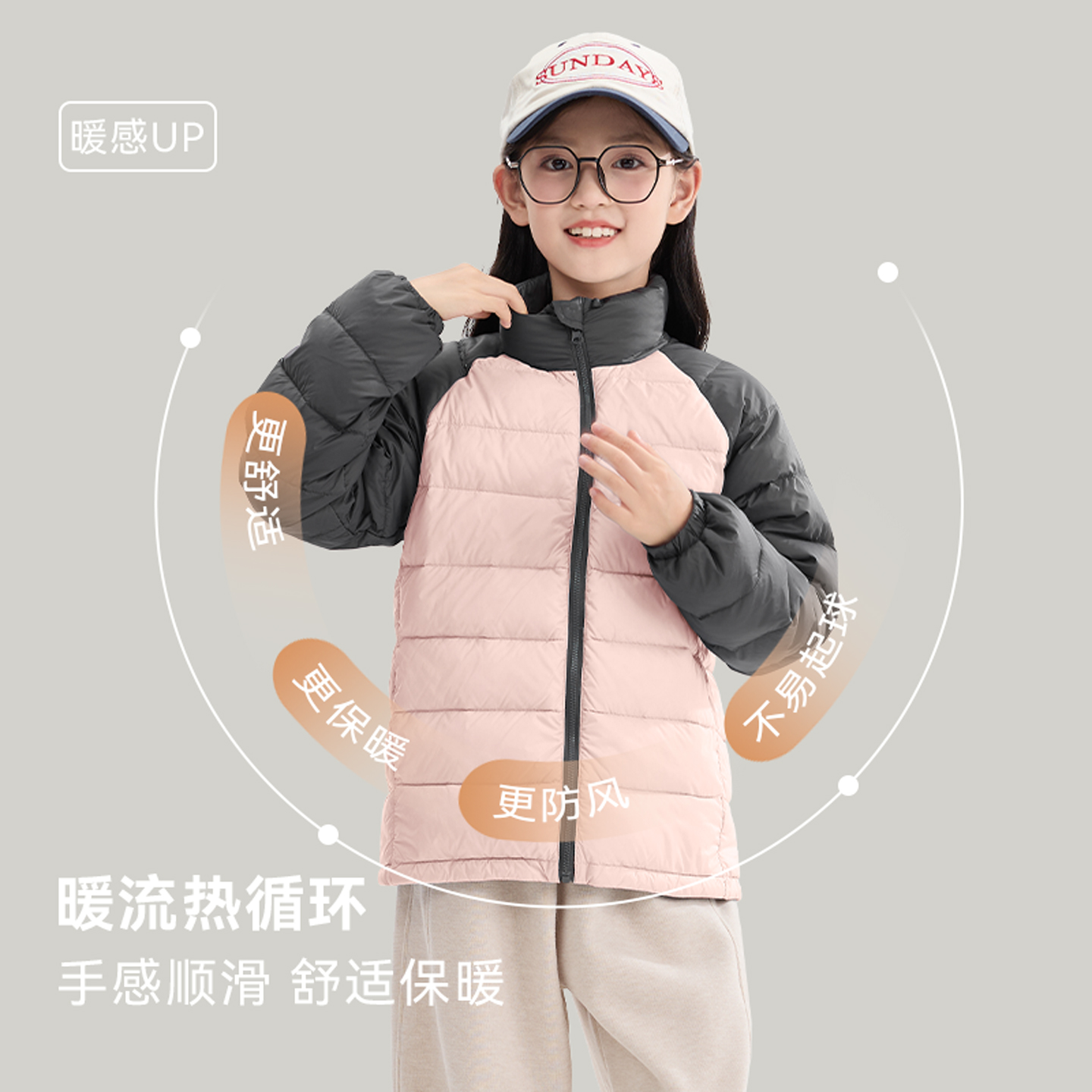 史努比童装女童粉色羽绒服2025新款轻薄棉服90白鸭绒外套儿童冬装