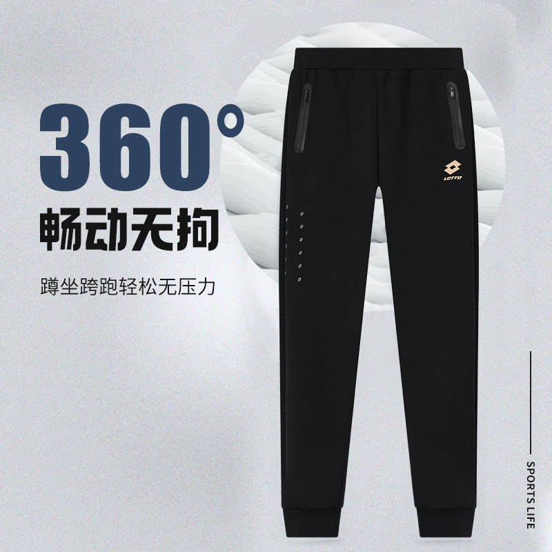 LOTTO乐途女裤收口运动裤2025秋冬新款黑色针织长裤百搭休闲裤子