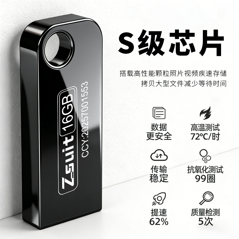 捷速优官方正品u盘定制刻字usb手指可插音响电脑办公金属优盘16G