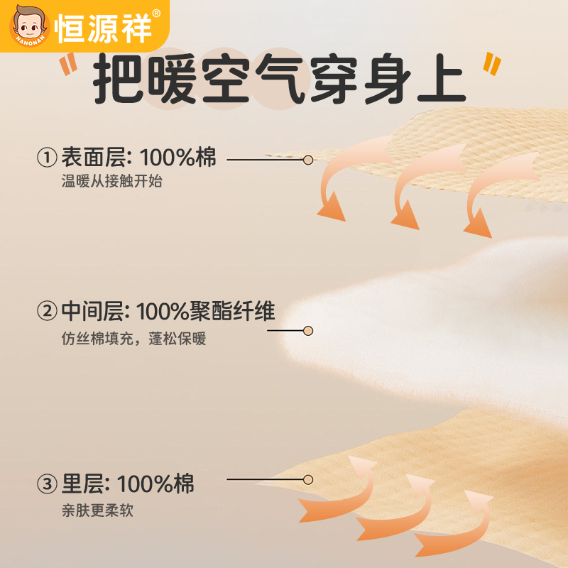 恒源祥儿童马甲纯棉男童保暖背心针织夹棉坎肩女童宝宝马夹秋冬季