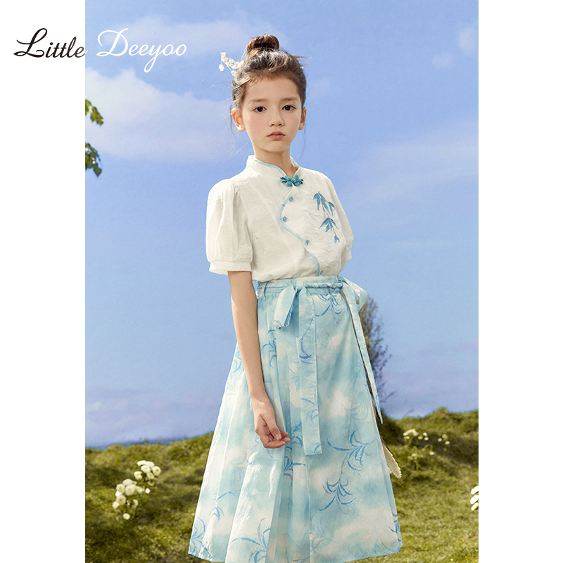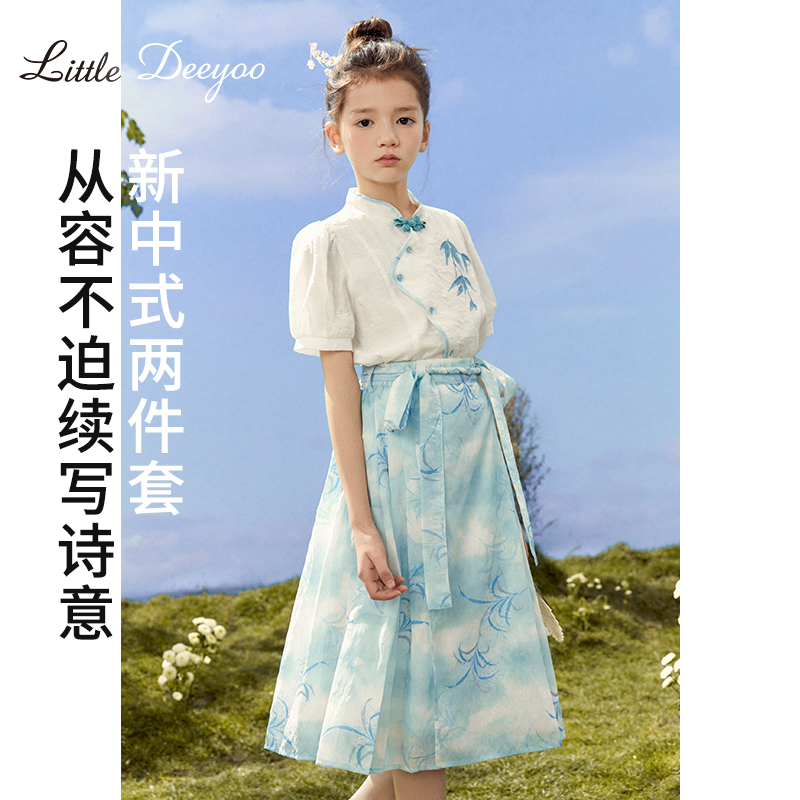 小叮尤尤马面裙女童套装2025夏季新款国风新中式儿童汉服两件套