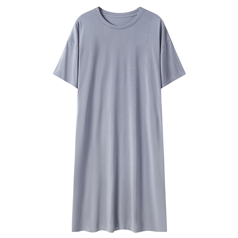 莫代尔睡裙女士夏季短袖可外穿薄款连衣裙孕妇纯色睡衣带胸垫一体