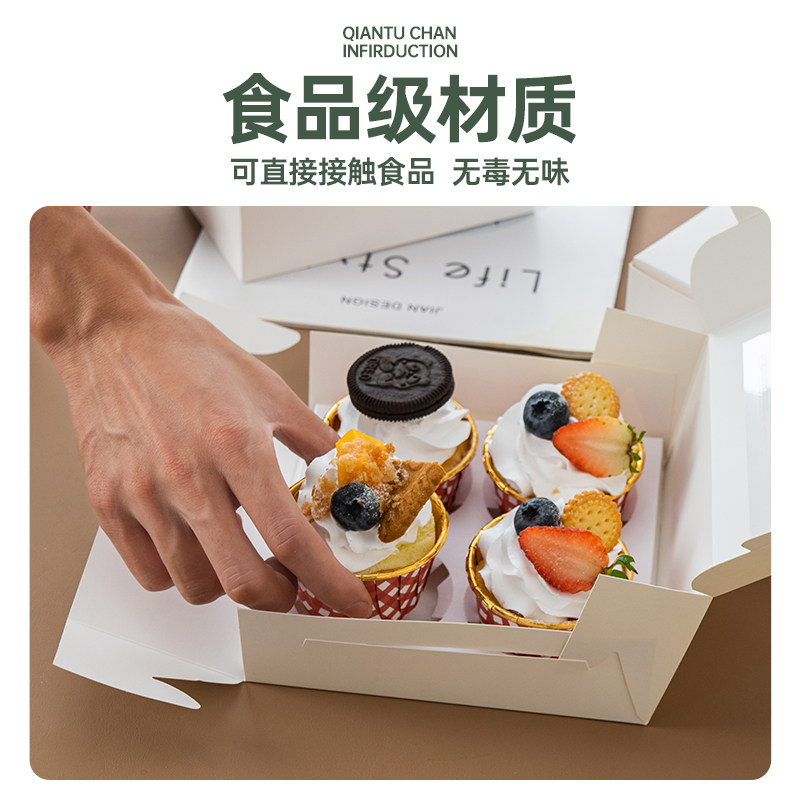 纸杯蛋糕打包盒子2/4/6开窗西点蛋挞包装盒慕斯木糠杯布丁马芬杯