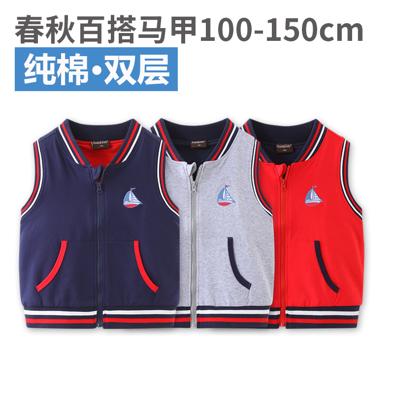 儿童纯棉双层春秋马甲男女童中小童宝宝无帽立领背心百搭休闲坎肩