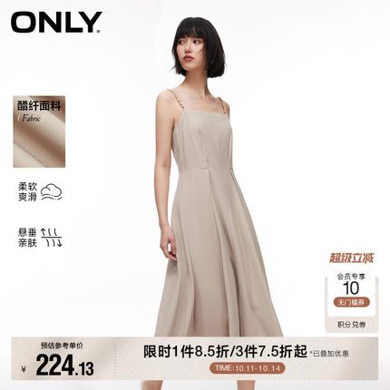 【ONLY奥莱】夏季通勤休闲高腰吊带中长裙伞裙连衣裙女