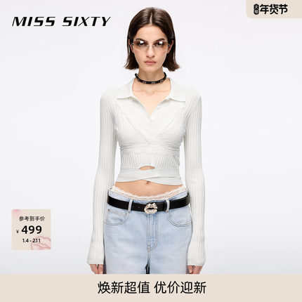 【杨幂同款】Miss Sixty25夏新款针织衫Polo领修身露脐上衣毛衣