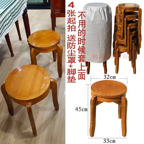 圆凳餐桌凳子家用现代简约全实木凳子可叠放中式椅子木头复古