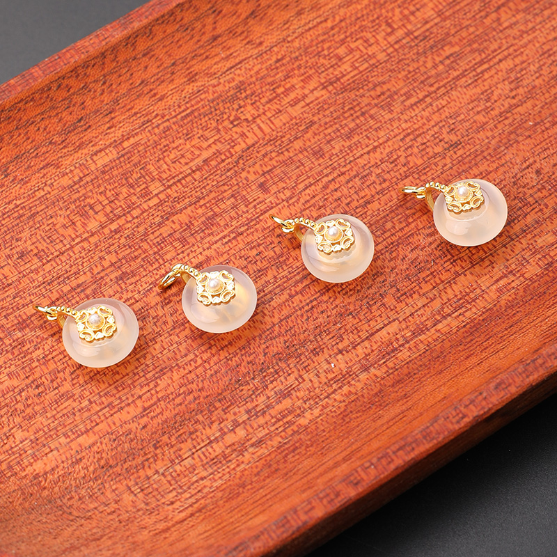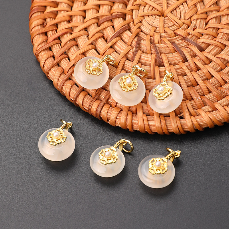 天然荔枝冻白玛瑙平安扣小滴溜diy配件水晶吊坠扣头散珠手链提溜