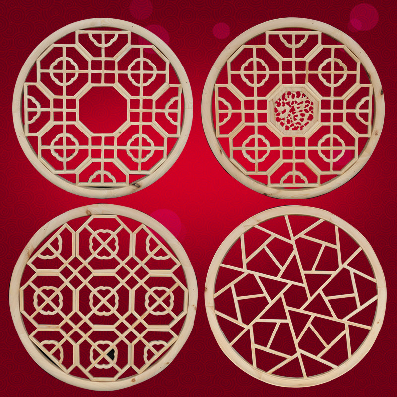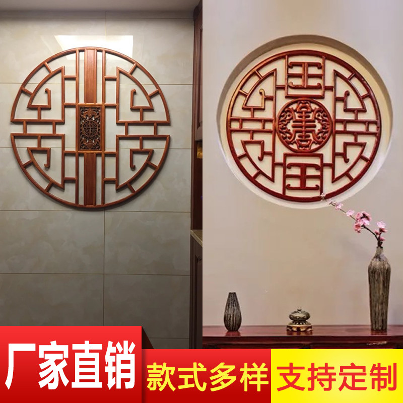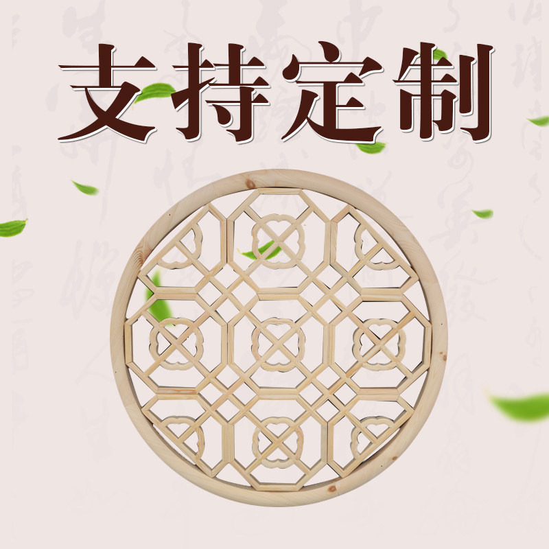 东阳木雕中式仿古门窗镂空实木吊顶圆形花窗花格客厅隔断灯罩定制