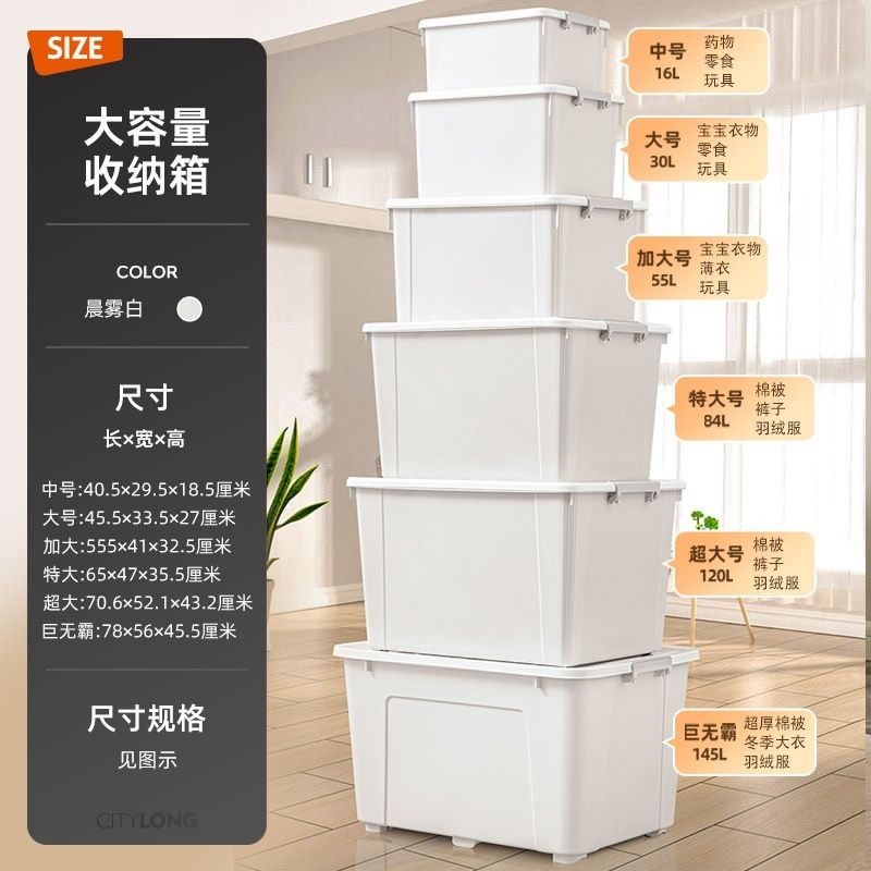 禧天龙塑料储物箱家用衣服大容量收纳箱带轮特大号宿舍书本整理箱