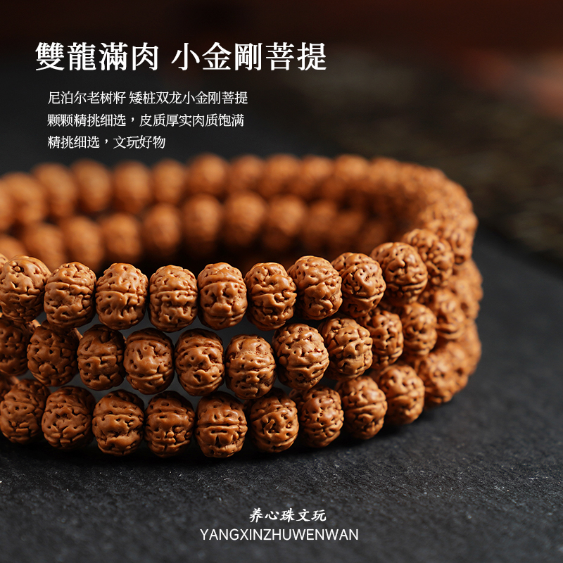小金刚菩提子手串108颗尼泊尔原籽男女文玩跑环盘玩佛珠项链配饰