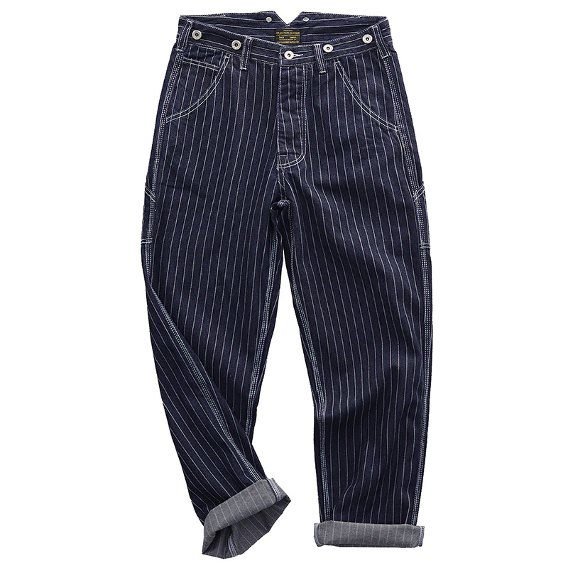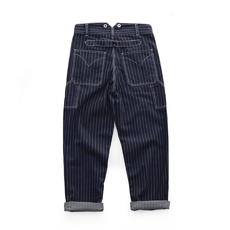 美式复古老爹裤阿美咔叽阔腿裤男竖条纹裤宽松直筒背带工装牛仔裤