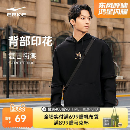 无双大师丨鸿星尔克卫衣秋季男士休闲上衣国潮宽松连帽情侣卫衣男