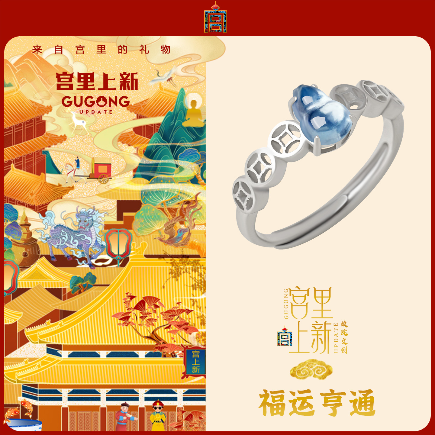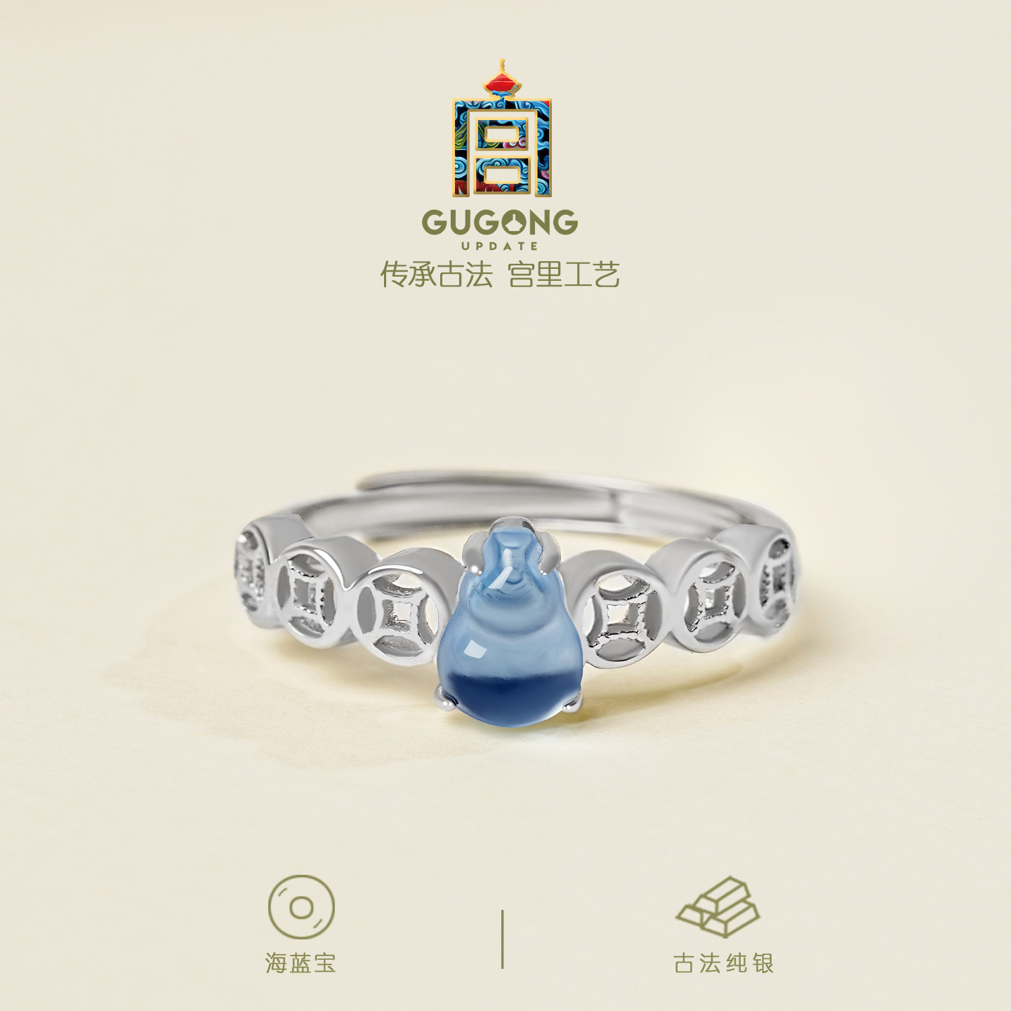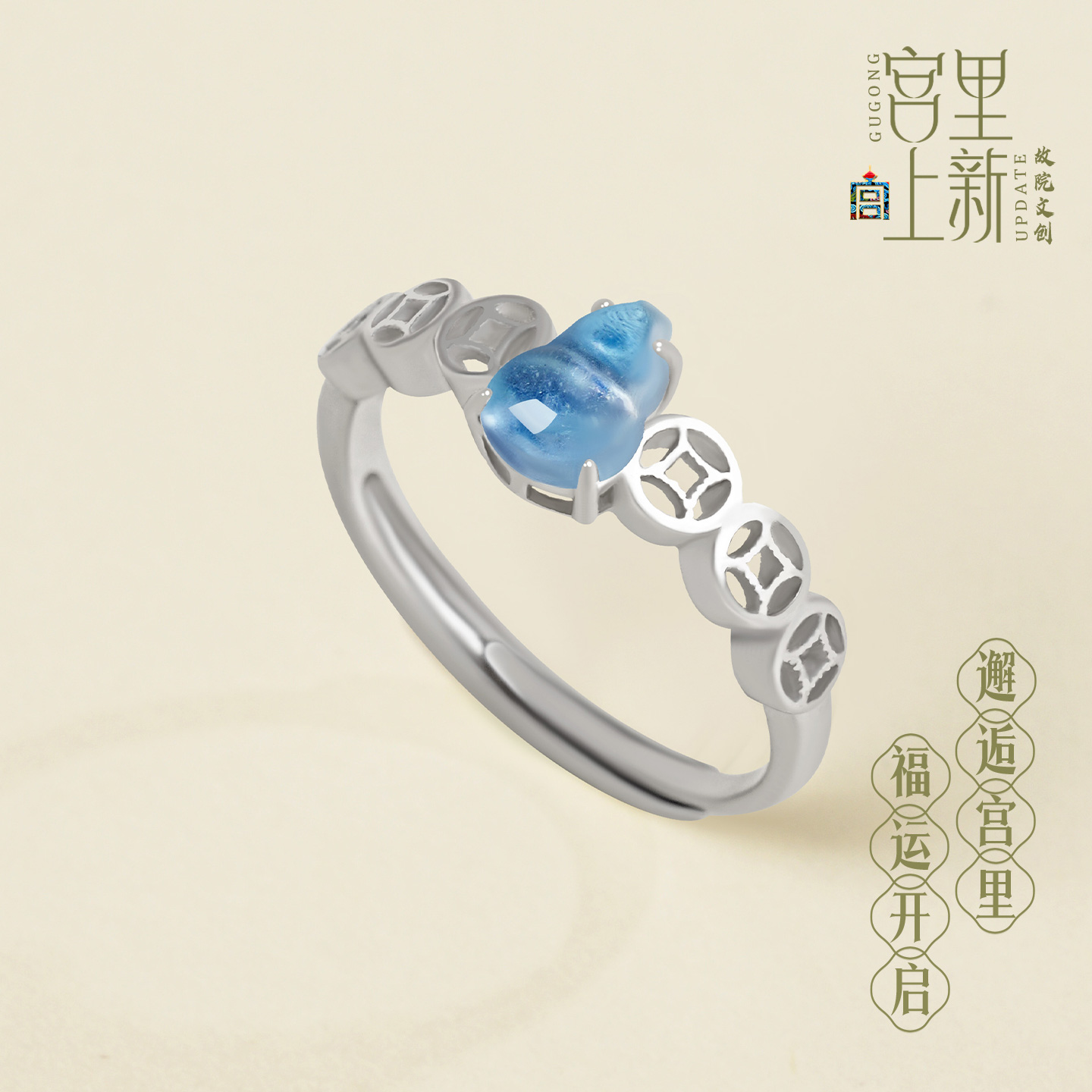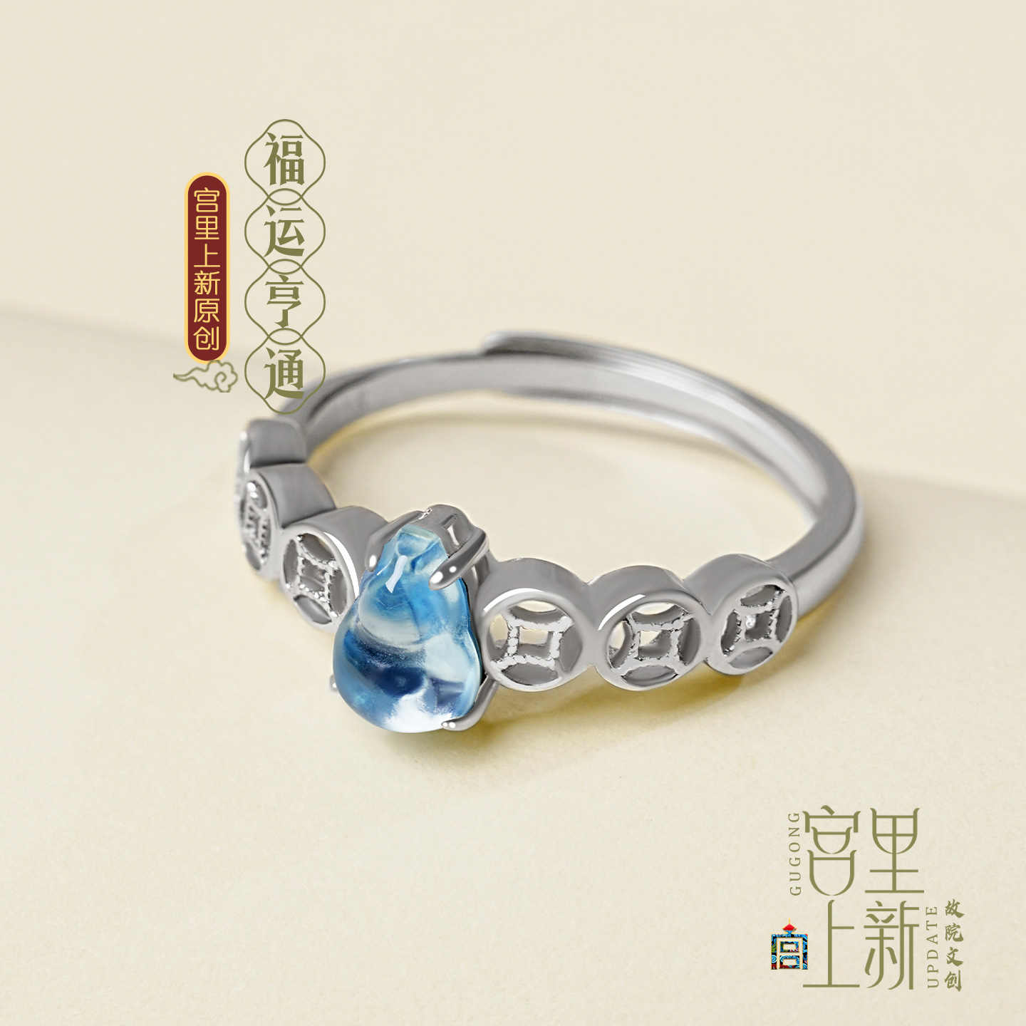 宫里上新海蓝宝戒指女葫芦蓝色宝石铜钱纯银招财转运妈妈生日礼物