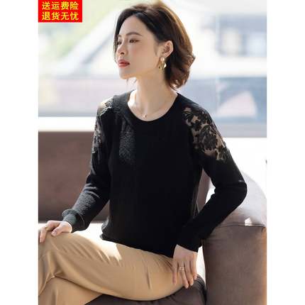 五十多岁妈妈秋装套装新款洋气质针织衫t恤中老年人女春秋上衣服
