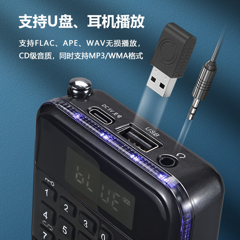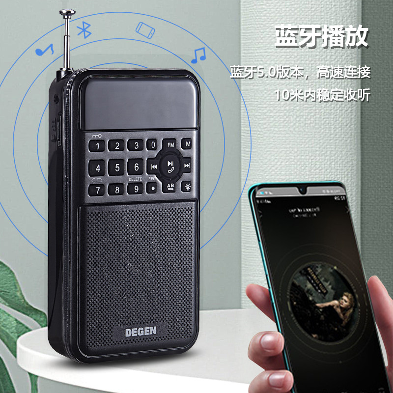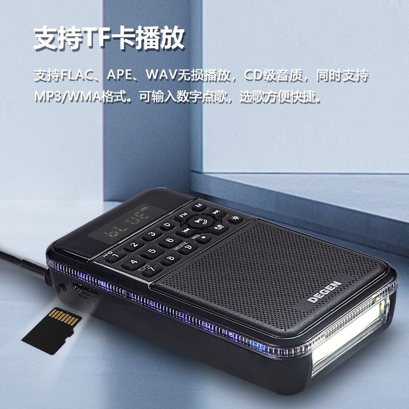 德劲DE608便携无损蓝牙插卡u盘录音发烧音响Fm收音机可定时升级版