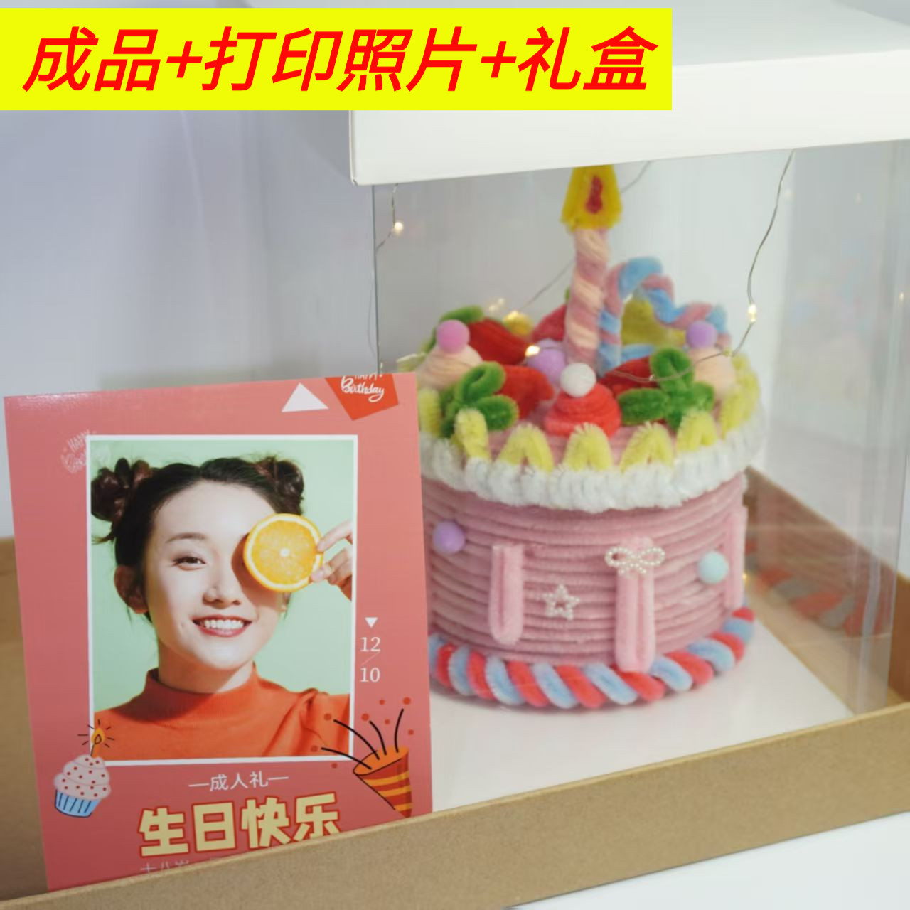 (蛋糕成品+打印挂好照片发货)扭扭棒蛋糕惊喜浪漫感动生日礼物