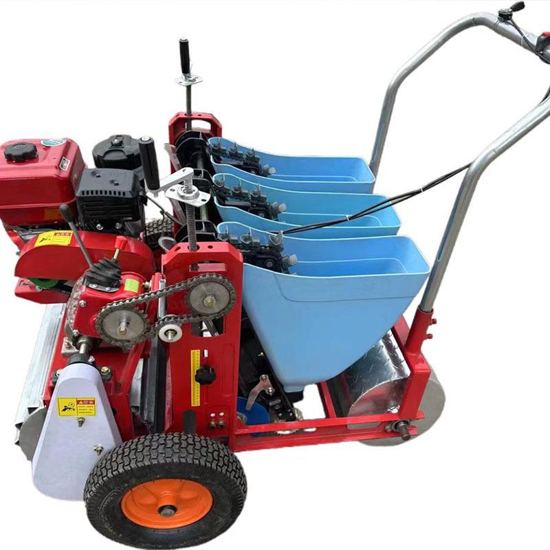 四轮牵引式大蒜播种机手推电动汽油大蒜点播机多行蒜瓣种植机