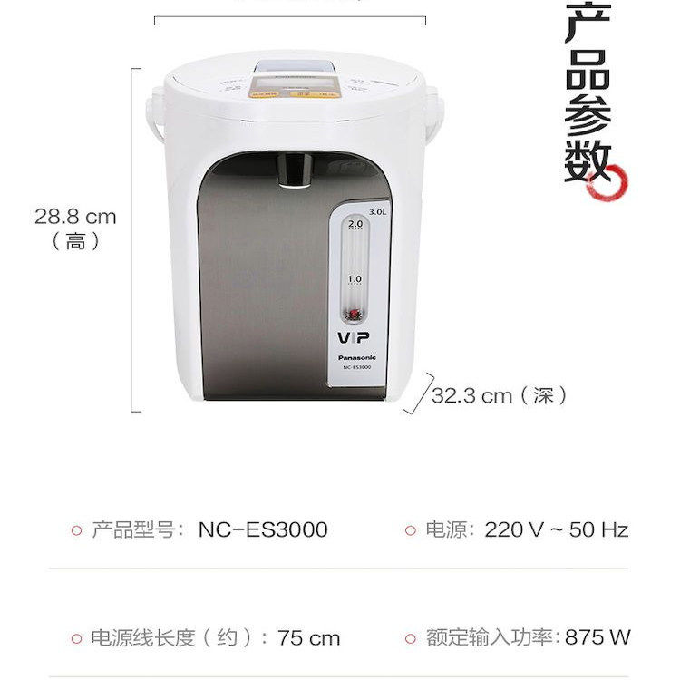Panasonic/松下 NC-ES3000热水瓶除氯沸腾弱碱水保温烧水壶ES4000