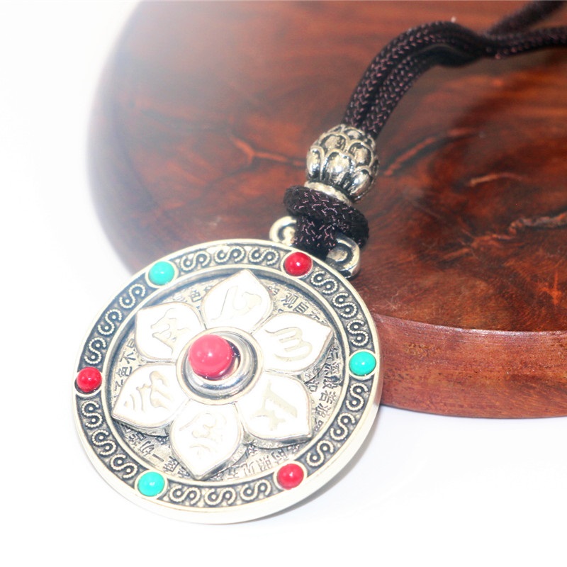 西藏个性复古藏银六字真言项链吊坠吊牌男女情侣款饰品配饰民族风