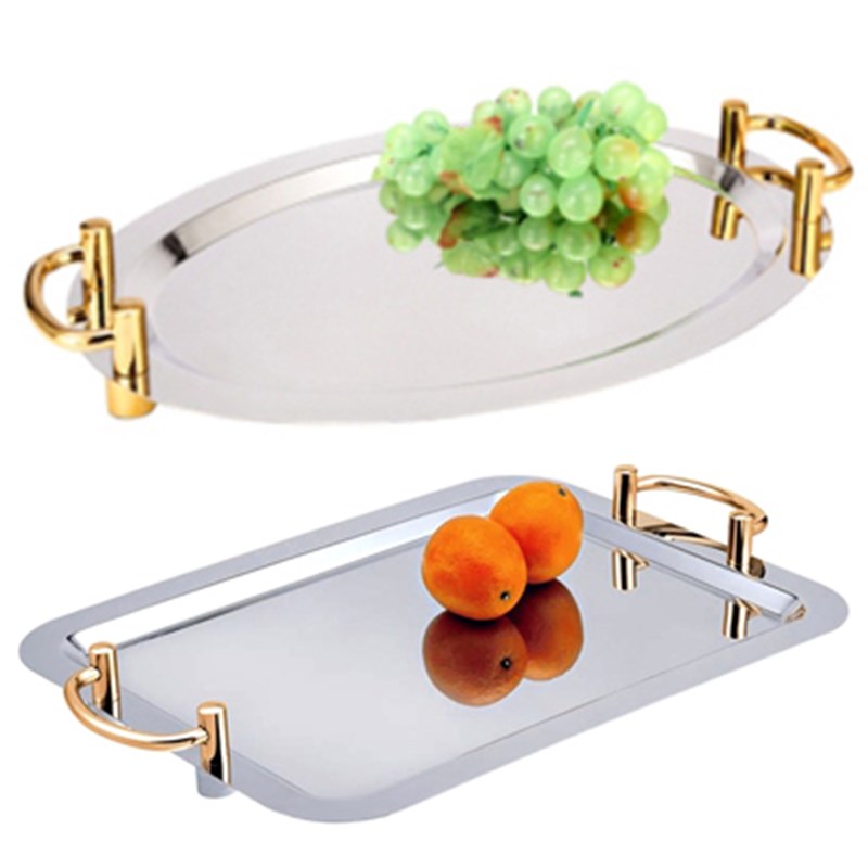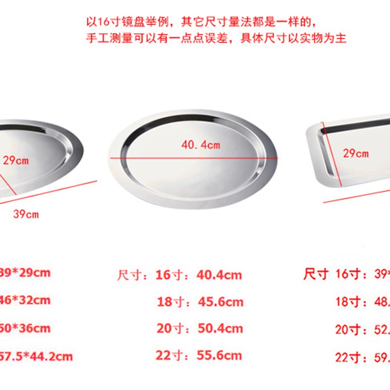 不锈钢镜盘方形长方托盘椭圆形z镜面盘沙拉托盘自助西餐水果盘鱼