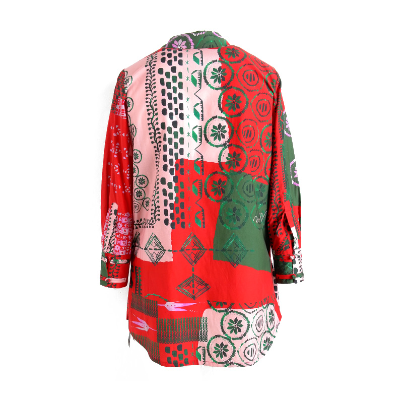 胖太太大码女装春秋新款衬衫中长上衣宽松几何图案显瘦720117010