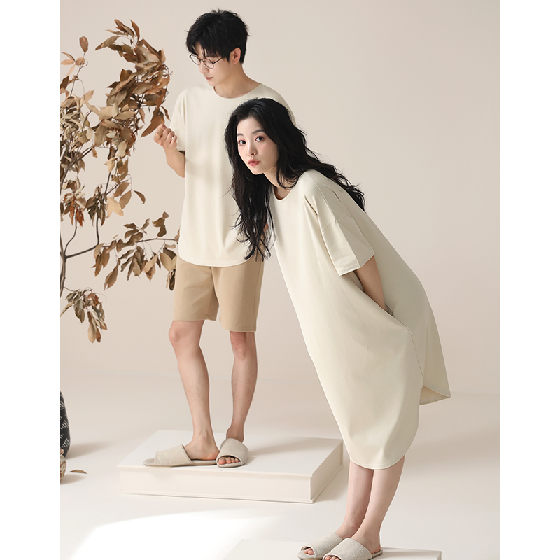 可人儿夏季情侣凉感纯棉睡衣套装休闲薄款夏天短袖家居服少女睡裙